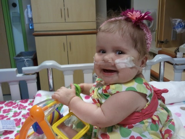 I was thrilled to hear Annabelle was sitting up on her own for even longing than before she had been in the hospital. We'll take that victory! She has such a splendid smile mom : D