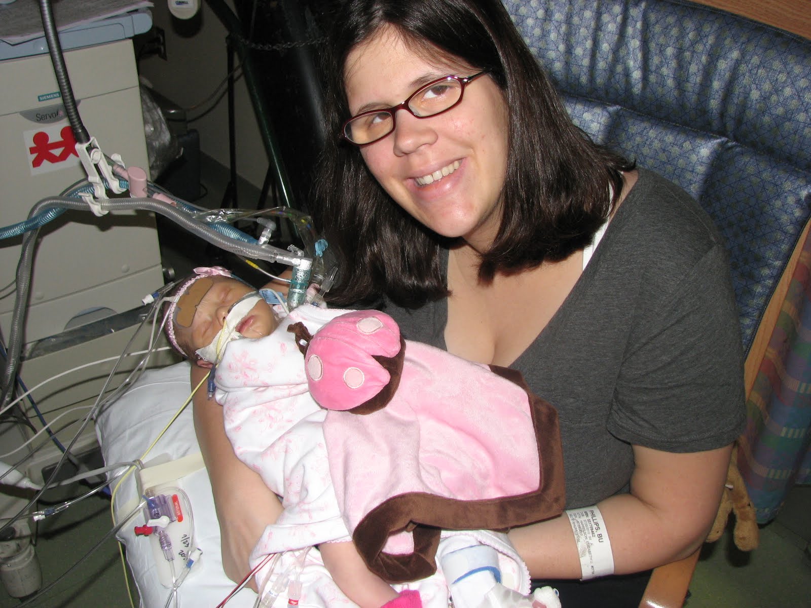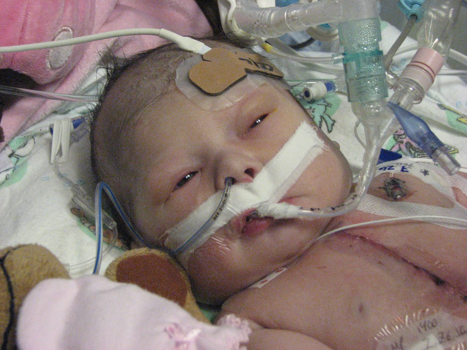 We saw her last night and got a WONDERFUL surprise. We were told that it was a big probability that they would leave her chest cavity open after surgery to give room for swelling, and that it is about 4 days before they close it. (they do cover it with some gauze…) but when we finally got back to see her, we found that it was CLOSED! The nurse says this is a VERY VERY good thing, and means we get skip that part. WOOHOO!!!