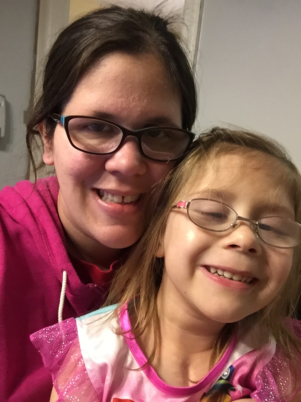 | 2016 — NORMAL Day. Momma’s hair is a mess. Annabelle is in pawprint pajamas (she got new today on her special day) and big smiles by all! SO VERY THANKFUL!!!! |